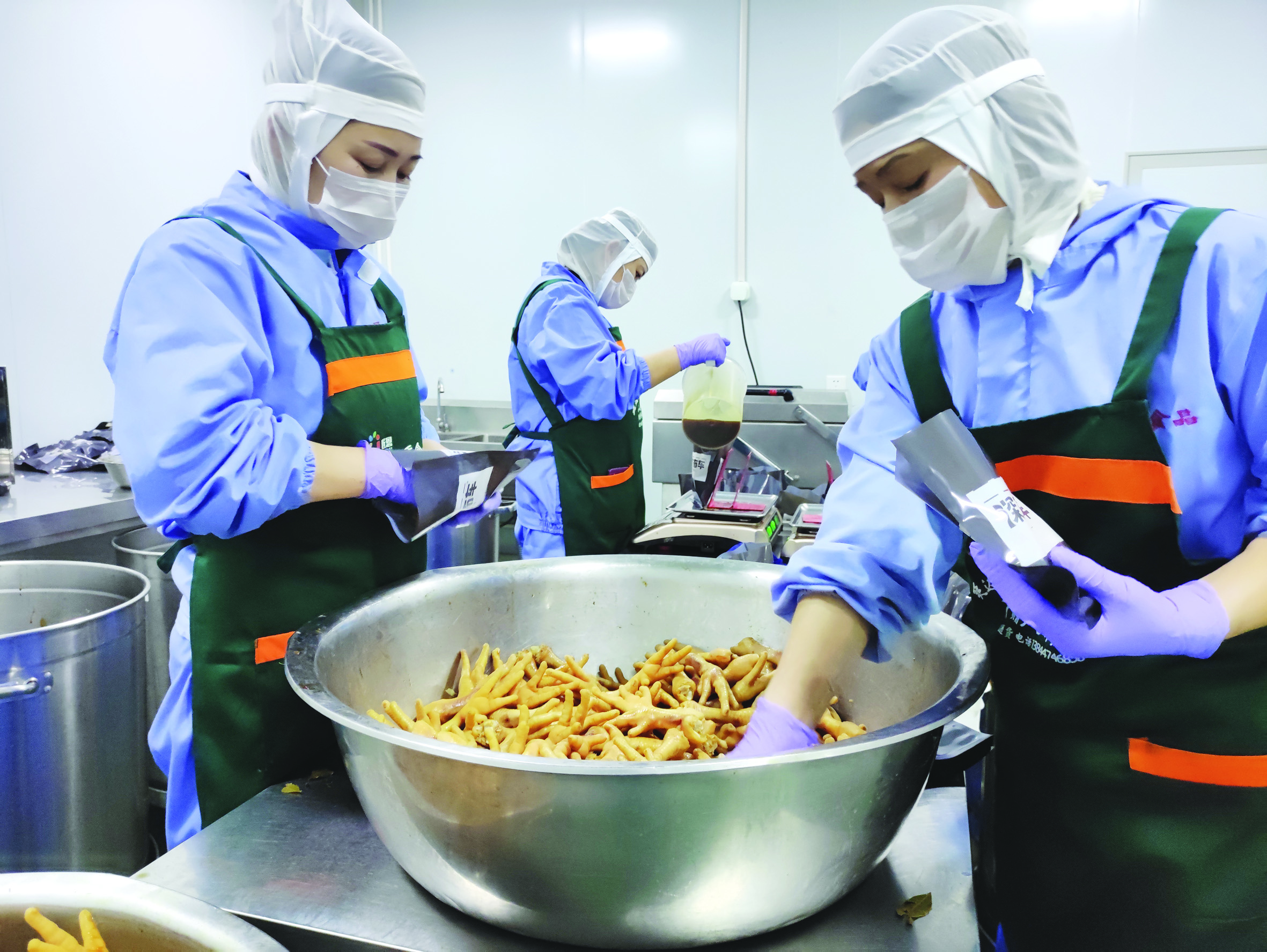 17일, 연길국가고신기술산업개발구 중소기업창업단지에 있는 연변장향식품유한회사 작업장에서는 종업원들이 부지런히 일손을 다그치고 있었다. 재료배합원이 일정하게 비례를 맞추어 만든 재료를 대형 믹서기에 투입하면 제법 맛갈스런 색상의 양념이 만들어져서는 고소한 향기를 내뿜는다. 그런가 하면 한켠에서는 생산된 불닭발 양념을 포장용기에 소량으로 옮겨담고 있었고 다른 한켠에서는 이미 소독된 닭발에 양념을 버무리고 있었다.