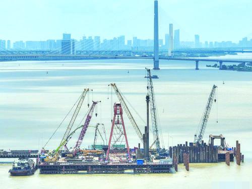 중국철도건설대교공정회사에서 책임 및 건설하는 세계 최대 경간의 자정식 현수교인 만룡대교 주교각 말뚝기초 작업이 21일에 준공됐다. 광동성 광주시 남사에 위치한 만룡대교는 총길이가 5146메터, 교량길이가 1150메터, 경간길이 608메터로 설계됐다. 만룡대교 주교각 말뚝기초 작업의 콩크리트 타설시공 현장을 21일 드론에 담았다. 신화사