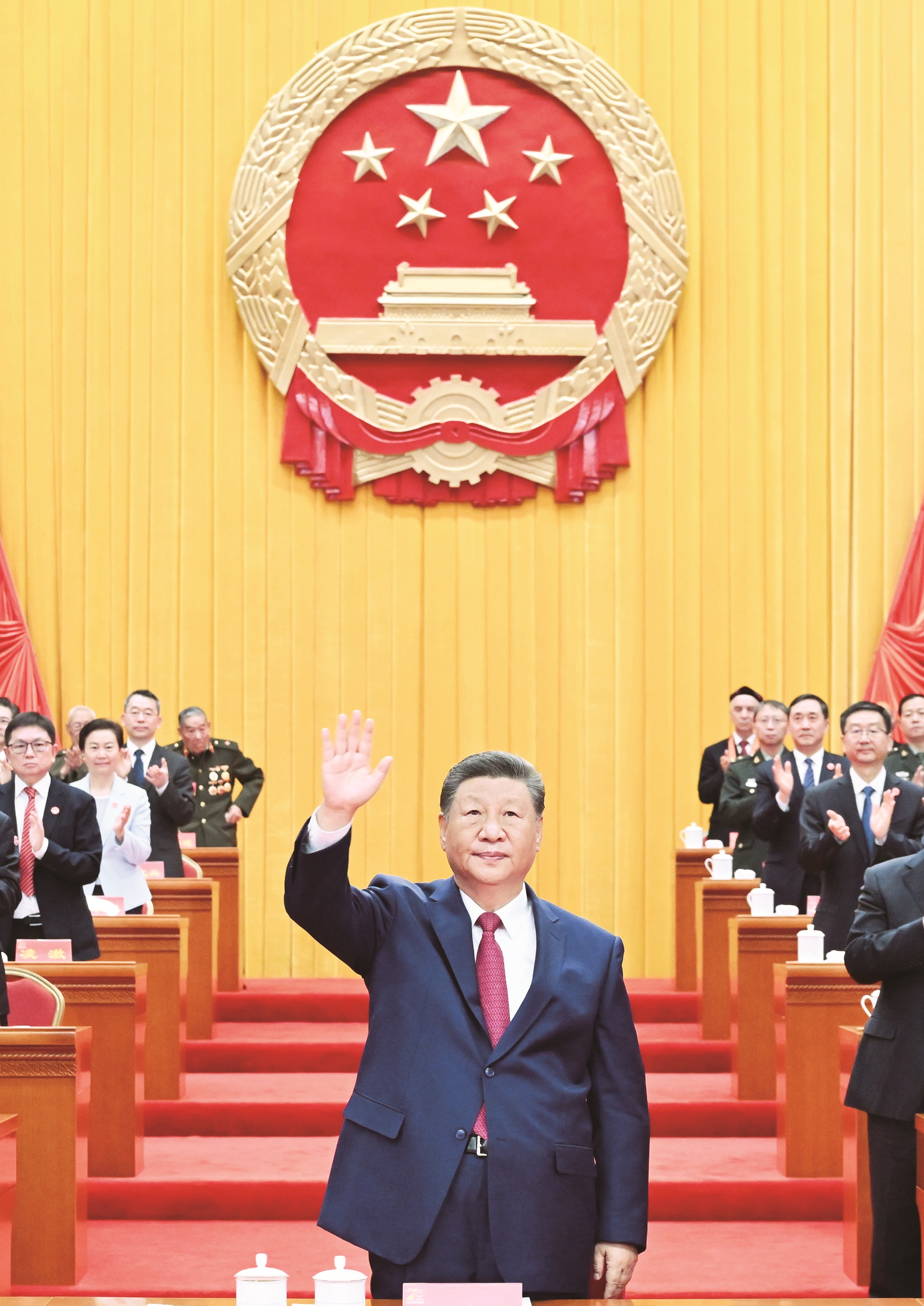 오전 10시 30분경, 흥겨운 악곡 소리가 울리는 가운데 습근평 등 지도자 동지들이 주석대에 오르자 장내에서 오래동안 열렬한 박수소리가 울렸다.