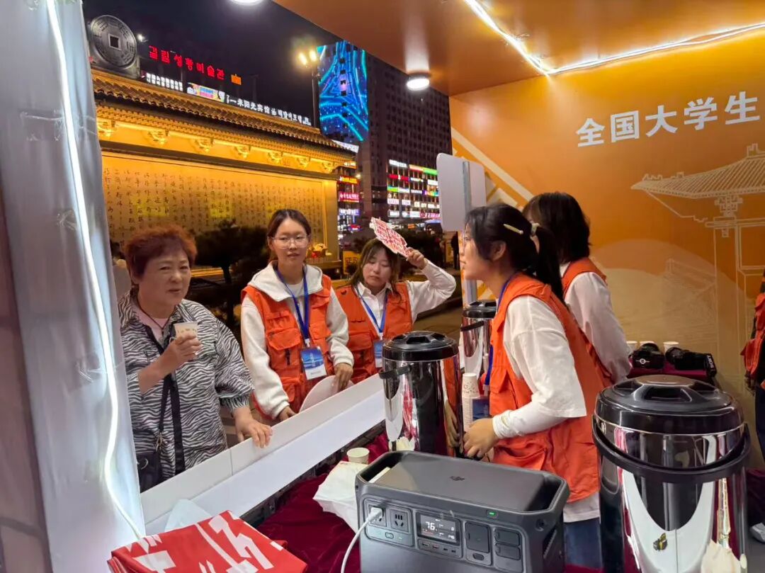 “비 오는데 우산을 안챙기셨죠? 우비를 드릴게요. 따뜻한 차 한잔 마시면서 여기에서 비를 잠시 피하세요.” 연변대학 사범학원 2022급 소학교육학과 학생인 리나는 관광객들에게 우비를 건네는 것은 물론 따뜻한 음료를 따라드리고 비 오는 날 안전에 류의하도록 친절히 당부했다.