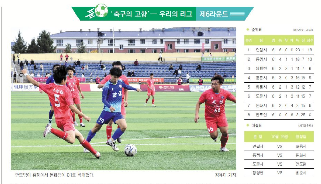 한편 연길팀은 6라운드 전승으로 한 라운드를 앞서 연변주 현시축구리그 우승을 차지했다. 종합