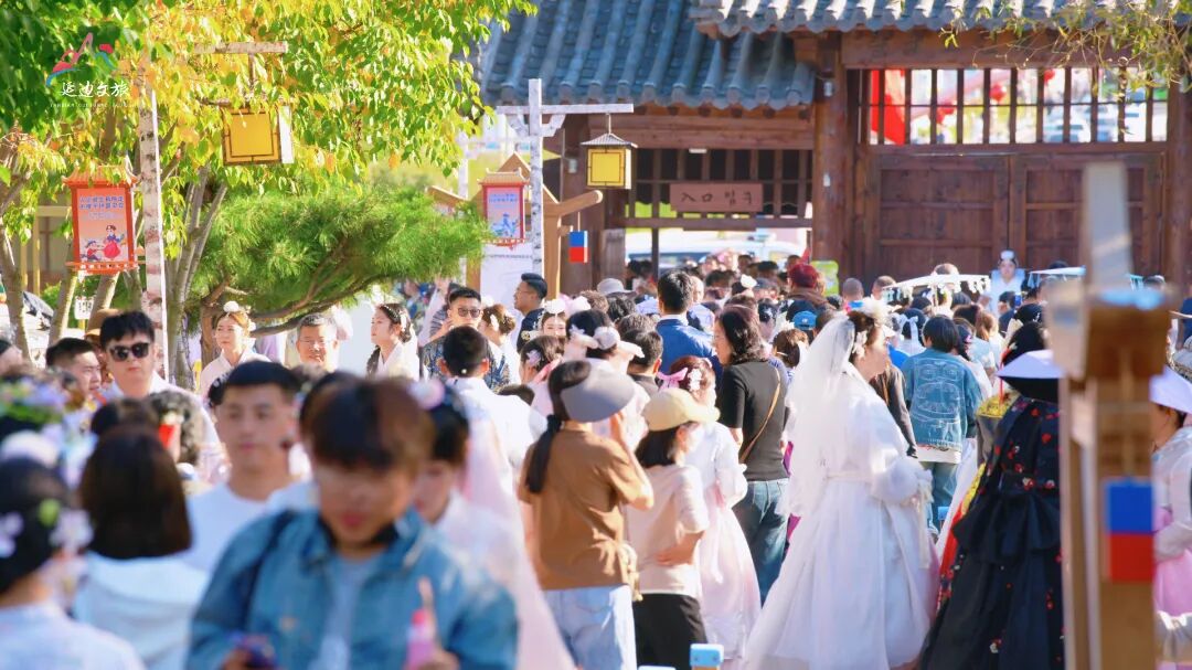 중국조선족민속원에 들어서기 전에 거리 량켠에 늘어선 려행촬영 스튜디오를 볼수 있었다. 알아본데 의하면 2022년 민속원 주변의 려행촬영 스튜디오는 3개에 불과했지만 현재 200여개로 증가했다.