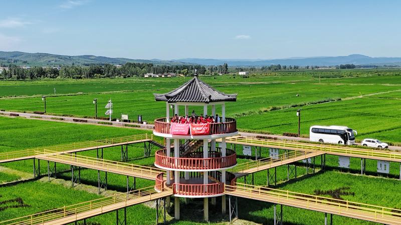 해란강반, 청산이 끝없이 펼쳐지고 황금벼 물결이 출렁인다. 길림성 연변조선족자치주 화룡시 광동촌은 비가 그친 뒤 안개가 짙게 드리워 먼 산은 얇은 면사로 뒤덮인 듯하다. 논밭게락원, 논밭기차, 전망대…관광객들은 이곳에서 시골 풍경을 마음껏 즐긴다.