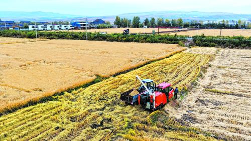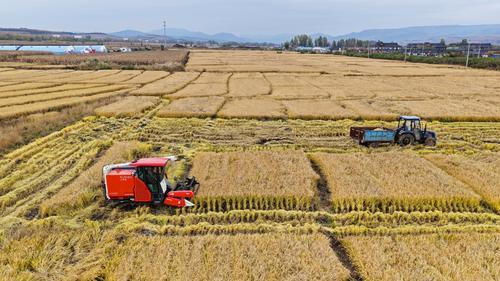 15일, 연길시 조양천진 태흥촌의 벌판에서 벼수확기가 분주히 움직이고 있다. 최근 우리 주 곳곳에서는 벼이삭의 여문상태를 살펴가며 소규모로 벼가을을 시작하고 있다. 리계화 기자