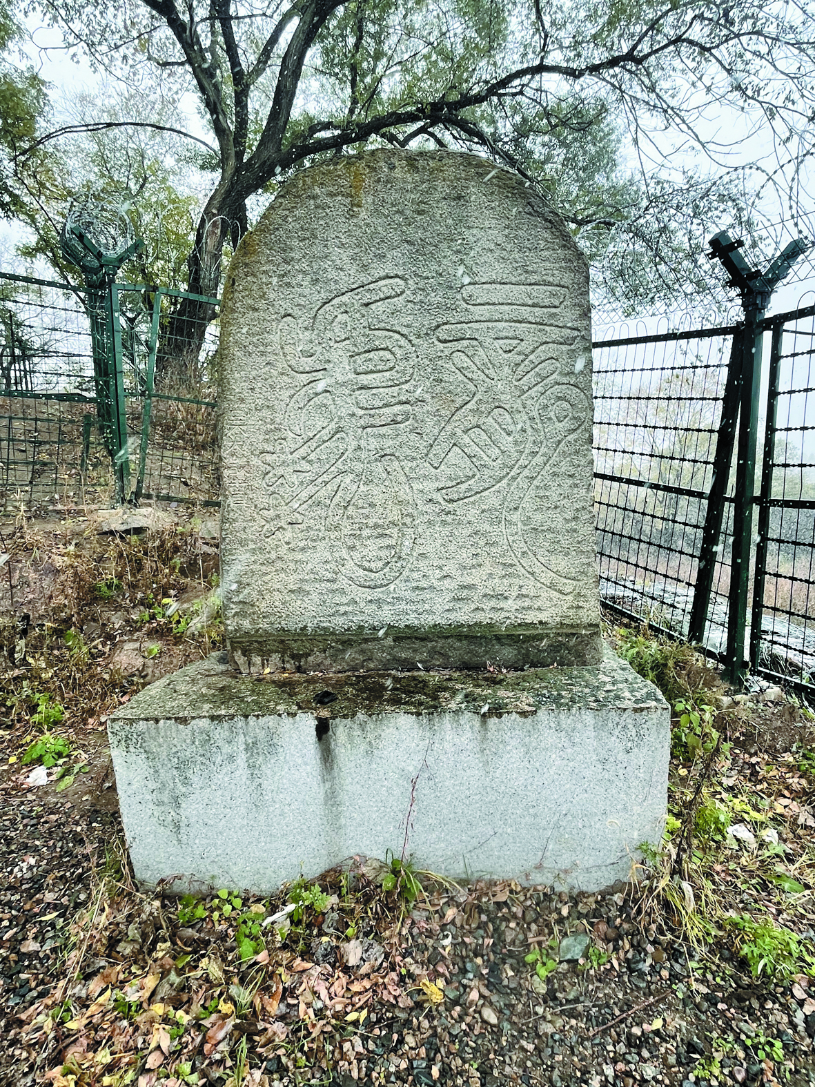 량수단교 옆에 있는 룡호석각 비문과 량수천자15렬사순난지 비석.
