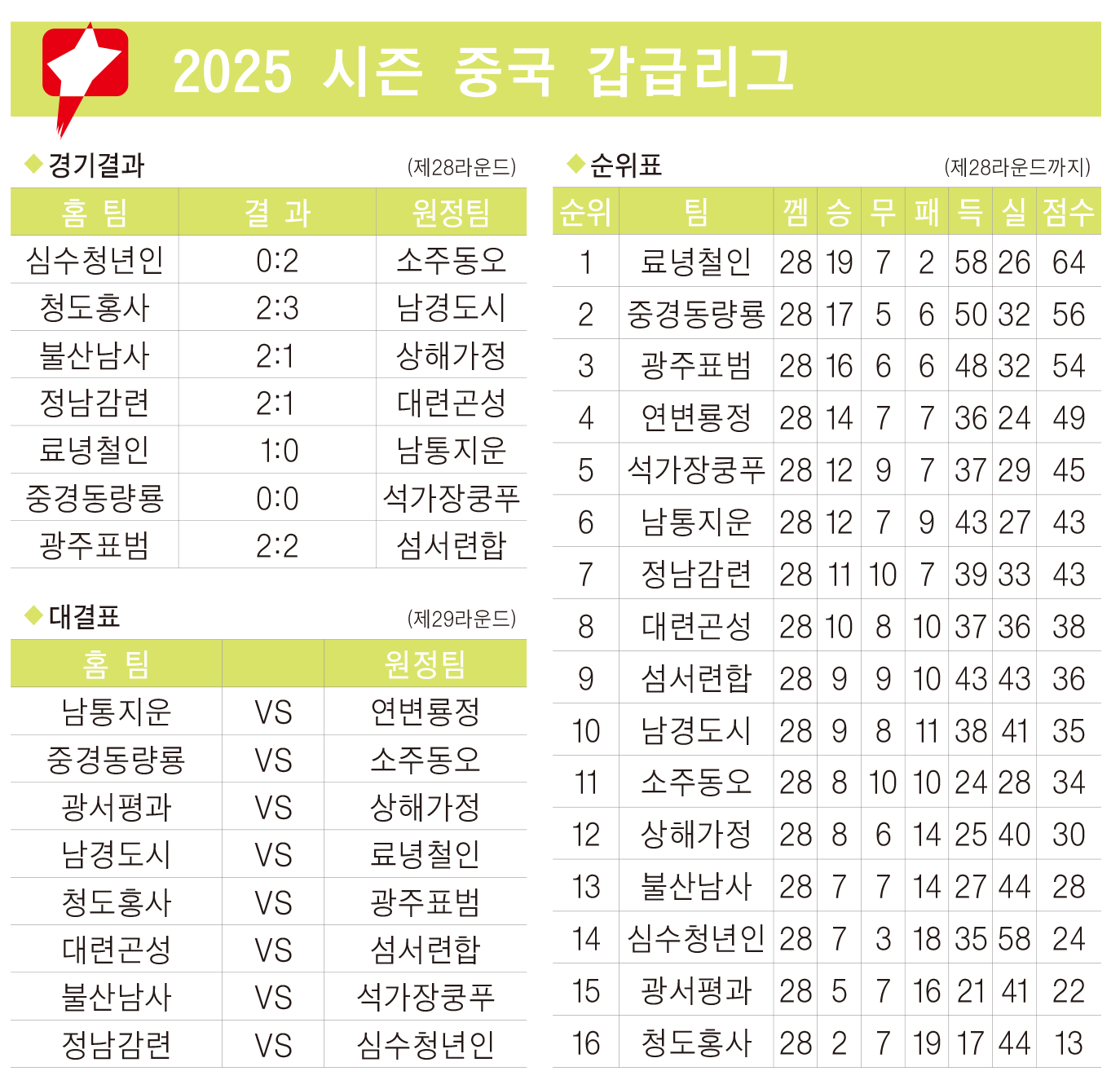 이번 주말 연변팀이 원정경기에서 대결할 상대는 현재 승점 43점으로 리그 6위에 있는 남통지운팀이다. 올 시즌 제14라운드 량팀의 첫 대결에서 연변팀은 홈장에서 서계조의 헤딩으로 1대0 승리를 따냈다. 연변팀이 최근 2껨의 경기에서 6꼴을 몰아치고 1꼴만 내주는 좋은 상태를 보이는 동시에 남통지운팀도 지난주말 료녕철인팀과의 경기전까지 9라운드 무패행진을 이어갔다. 연변팀이 상승세를 타고 올 시즌 마지막 원정경기를 승리로 장식할 수 있을지 기대를 모으고 있다.