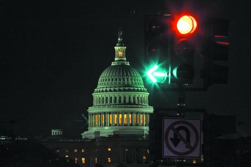 9일, 미국 수도 워싱톤에서 촬영한 미국 국회의사당의 모습이다. 9일, 미국 언론에 따르면 미국 상원은 련방정부의 '셧다운'을 종료하기로 합의를 이루었다. 신화사