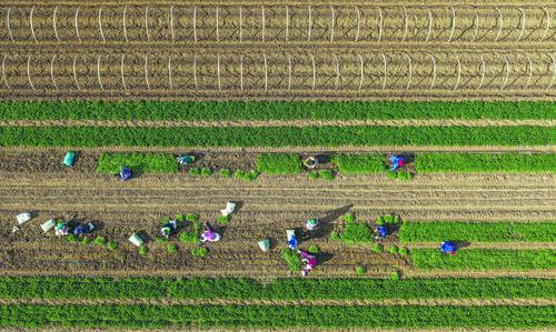 18일, 하북성 당산시 옥전현 홍교진의 농민들이 밭에서 고수를 수확하고 있다. 현재 각지의 농민들은 농사시기를 놓치지 않고 수확, 건조, 판매 등 작업을 서두르며 바쁜 모습을 보이고 있다. 신화사