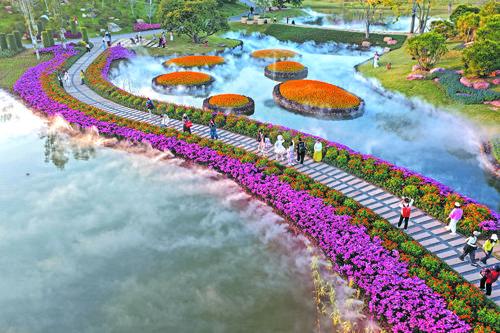 26일, 관광객들이 광서 남녕시 청수산풍경구의 구석화원에서 꽃을 감상하고 있다. 최근 며칠 동안 광서 남녕시는 맑은 날씨를 맞이했다. 겨울의 따뜻한 해살 아래 남녕시 청수산풍경구의 구석화원에는 꽃들이 유난히 아름답게 피여있다. 신화사
