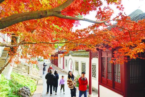 8일, 관광객들이 절강성 가흥시 남호풍경구 호심도에서 단풍잎을 감상하고 있다. 겨울날의 대지는 여전히 알록달록한 생기를 드러내며 색채와 고요함이 어우러진 그림 같은 장면들이 조용히 펼쳐지고 있다. 신화사