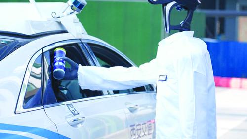 중국자동화학회에 따르면 제15회 ‘중국 지능차 미래도전경기’가 14일 강소성 상숙시에서 막을 내렸다. 각축전을 거쳐 전국 대학교의 14개 참가팀중에서 향항과학기술대학(광주) 팀이 우승을 차지하고 서안교통대학, 청화대학, 상해교통대학 팀이 2, 3등상을 수상했다. 사진은 경기중에 지능차와 인간형 로보트가 서로 교류하는 모습이다. 신화넷