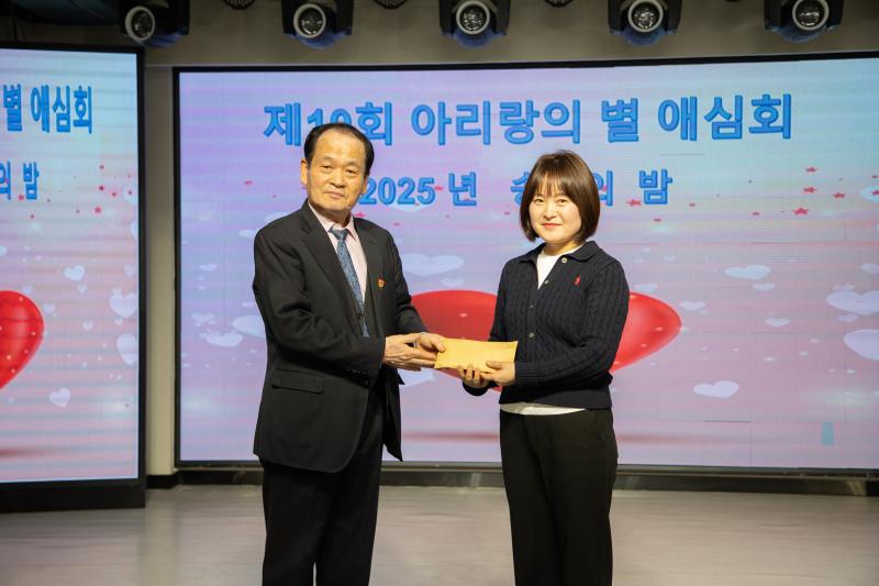 이날 아리랑의 별 애심회 회원 80여명이 사랑의 모금 행사를 펼쳤다. 회장 림룡춘은 모금한 기부금 1만원을 도움이 가장 필요한 곳에, 생활형편이 어려운 가정의 학생들을 돕는 데 써달라며 연변TV <사랑으로 가는 길> 프로그램 제작진에게 모금액을 전달했다.