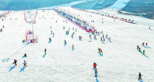 28일, 사람들이 하북성 옥전현 옥룡만스키장에서 스키를 타고 있다. 겨울철 주말이면 사람들은 스키장 등 빙설오락시설을 찾아가 빙설운동을 체험하며 겨울날의 즐거움을 만긱한다. 신화사