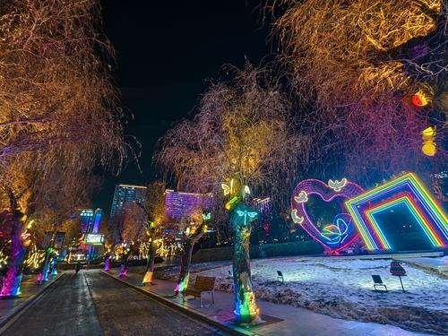 연길시인민공원 야간관광시설 개조 승격 대상이 관광객들에게 몰입식 야간관광의 새로운 공간을 선물하게 된다. 197만원 가까이 투입된 이 대상은 과학기술과 예술을 융합한 야간 락원으로 거듭나 연길의 밤을 더 흥미롭게 해줄 것으로 기대를 모으고 있다. 사진은 30일에 촬영한 연길공원 남문광장 일각이다. 박은희 기자