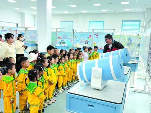 도문시과학기술관에서는 전민과학기술보급에 취지를 두고 유치원과 중소학교, 여러 가두를 상대로 과학기술보급전시를 펼쳐 지난 한해 연 5.4만명이 전시를 참관했다. 사진은 유치원 어린이들이 2025 중국류동과학기술관 순회전시를 참관하는 장면이다. 진연룡 기자