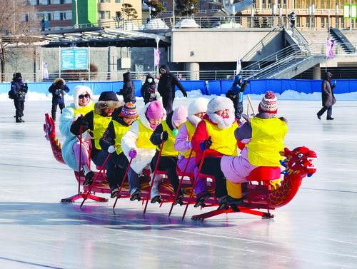 (단독사진기사)-‘제12회 전국 대중 빙설시즌’ ‘건강 길림・락동 빙설’ 2025-2026년 연길시빙상룡주경기 부르하통하 빙설환락원서 열려