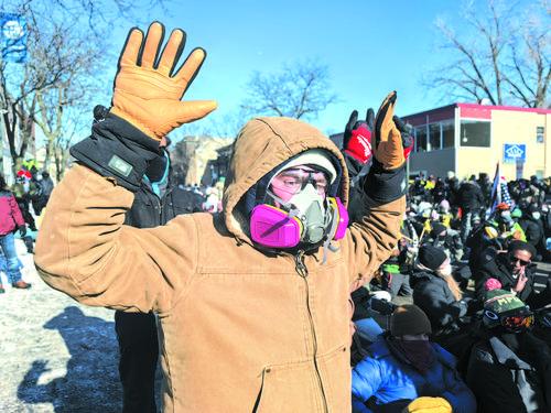 24일, 미국 미네소타주 미니애폴리스의 항의시위 현장 모습이다. 24일 오전, 미니애폴리스에서 재차 이민집법 총격사건이 발생해 37살의 미국 남성공민이 사망했다. 이번 돌발사건은 현지의 긴장정세를 가일층 고조시켰다. 신화사