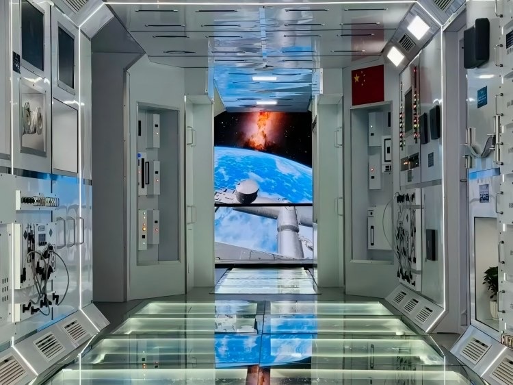 ‘비천’ 전시실은 ‘신화에서 성신까지’를 주제로 하여 길림성의 기여와 항공우주 정신을 융합했는바 전시 내부에는 핵심 체험구역이 마련되여 천궁 우주정거장 핵심 선실을 재현해 방문객들이 직접 우주 생활 환경을 체험할 수 있게 한다.