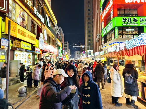 연길왕훙벽이 독특한 이중언어 간판과 진한 민족문화 매력으로 관광객들에게 각광받으면서 왕훙벽 주변 상가들에까지도 인기가 이어지고 있다. 사진은 3일 연길왕훙벽 근처 골목을 거니는 관광객들의 모습이다. 왕우남 기자