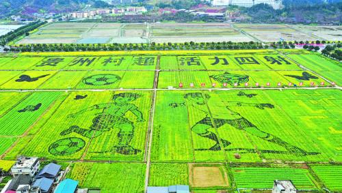 봄을 맞으며 귀주성 검동남주 용강현 차강제방에는 당지 촌민들이 사전에 계획하고 구역을 나누어 자색유채, 유채, 청경채 등 각종 색갈의 남새를 재배해 만든 ‘촌슈퍼리그’ 특색의 전원풍경이 모습을 드러냈다. 용강현은 ‘귀주 촌슈퍼리그’라는 농촌축구의 인기프로 주소를 바탕으로 농업, 문화, 관광, 체육의 융합발전 새 장면을 적극 구축하며 아름다운 향촌의 생기발랄하며 왕성한 활력을 생동감 있게 보여주었다. 대국삼농