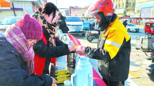 일전 공청단연변주위에서 전 주 각급 공청단조직을 동원하여 설명절기간에도 일선을 지킨 신취업군체를 위문하고 각종 위문품을 전달했다. 청년자원봉사자 70여명이 동참해 신취업군체 200여명을 위문하고 방한용품 500여점과 생필품 160여점을 전달했다. 사진은 그중 공청단화룡시위에서 자원봉사자 등을 조직해 애심봉사역을 설치하고 배달원에게 따뜻한 음료를 제공하는 장면이다. 김은주 기자