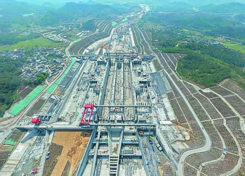 최근 평륙(平陆)운하건설 현장에서 비가 적게 내리는 시기를 리용해 핵심프로젝트에 박차를 가하고 있다. 총길이가 약 134.2킬로메터의 평륙운하는 서부륙해 신통로의 핵심사업으로 광서쫭족자치구 남녕 횡주시 평당강(平塘江)에서 시작돼 북부만까지 이어진다. 광서 평운하 마도(马道)허브건설 현장을 5일 드론으로 내려다봤다. 신화사