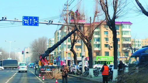 연길시에서는 가로수 정비 작업이 이어지고 있다. 생태가 아름답고 안전하고 질서 있는 도시환경을 구축하기 위해 련일간 연길시 림업부문은 안전우환이 존재하는 가로수의 마른 가지, 병든 가지, 과밀하게 자란 가지를 다듬고 있다. 17일, 연길시 태평거리에서 일군들이 고공작업차를 리용하여 나무가지를 잘라내고 있다. 한옥란 기자