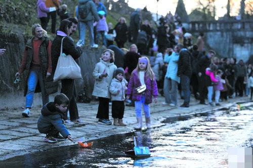 11일, 슬로베니아 류블랴나에서 한 소년이 직접 만든 작은 배를 개울에 놓고 있다. 슬로베니아 사람들은 봄이 3월 12일부터 시작된다고 인정한다. 현지 주민들은 이날이 오기 전에 각양각색의 작은 배를 물속에 넣어 봄을 맞이하고 있다. 신화사