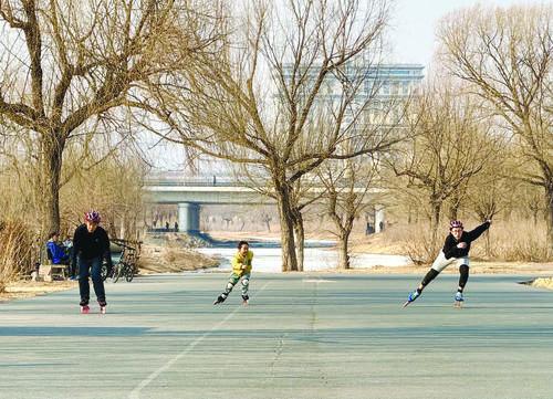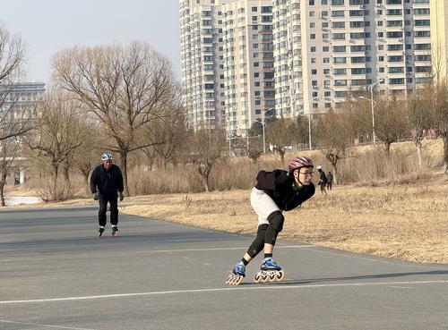 화창한 날씨가 이어지며 로라스케트를 타는 시민들이 늘고 있다. 어른부터 아이까지 다양한 년령층의 시민들이 봄바람 속에서 자유롭게 질주하고 있다. 24일, 연길 도시운동공원 광장에서 로라스케트를 타는 시민들의 모습. 김유미 기자