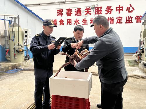 1일, 훈춘국제항 수입 킹크랩 통관 현장에서는 사업일군들이 검역과 검사를 진행하느라 분주했다. 신선 농수산물 전용 ‘록색통로’의 도움으로 전반 과정이 빠르고 순조롭게 진행되고 있었다.