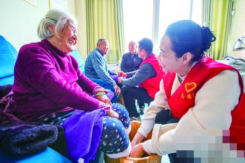 최근 강소성 숙천시 숙예구 하상가두 당원자원봉사자들이 운동사회구역 양로봉사중심에서 로인들에게 발을 씻겨주고 마사지를 해주는 등 자원봉사활동을 펼쳤다. 인민넷