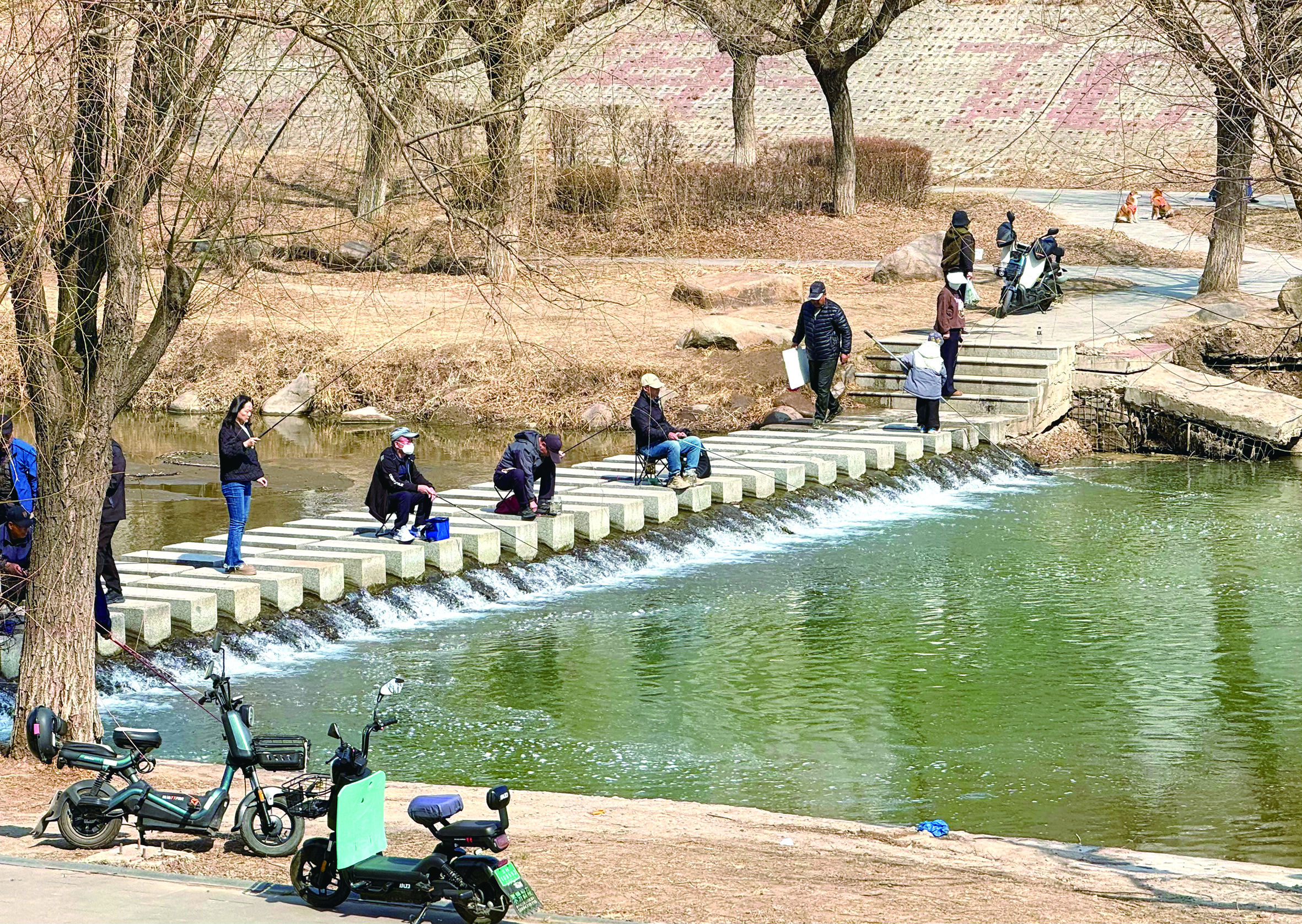2일, 봄빛으로 아름답게 물든 연길강 기슭은 일찌감치 찾아온 낚시군들로 제법 활기찬 모습이다. 낚시군들은 따사로운 해살을 받으며 봄의 여유를 만긱하고 있다. 김유미 기자
