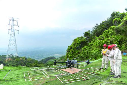중경시 강진구 락황진에 위치한 신옥 500킬로볼트 전력수송변전공사(회로 부분) 가운데의 장강 횡단 케블 포설 작업 현장에서 국가전력망 중경전력의 사업일군들이 무인기에 탑재된 4단 투척기를 리용해 유인 로프 견인 작업을 순조롭게 마쳤다. 사진은 11일 현장에서 준비작업에 한창인 시공일군들의 모습이다. 신화사