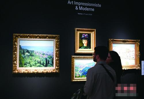 현지시간으로 11일, 프랑스 인상파의 유명 화가 작품이 빠리경매장에서 전시되였다. 사진은 빠리 크리스티 전시현장의 모습이다. 중국신문넷