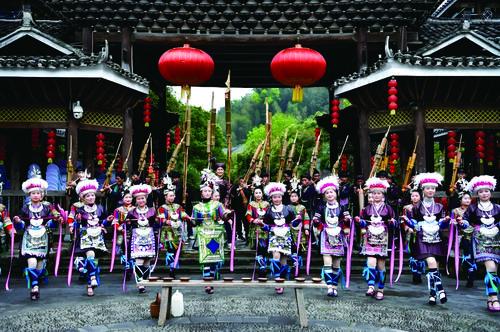 최근 귀주성 조흥 뚱채에서 뚱족 주민들이 귀빈을 위해 환영식을 선보이고 있다. 귀주성 려평현 조흥 뚱채는 우리 나라에서 가장 큰 뚱족마을로 통한다. 지난해 조흥 뚱채를 찾은 관광객 수는 연 151만명, 관광종합수입은 15억원을 넘어섰다. 최근 수년간 이곳은 독특한 민족문화와 생태자원을 바탕으로 문화관광산업을 대대적으로 활성화하며 국가 4A급 관광지로 성공적으로 지정됐다. 신화사