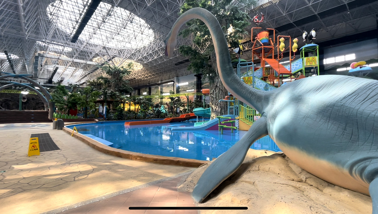환락워터파크는 동북지역에서 규모가 가장 크고 설비가 가장 선진적인 공룡테마 수상락원이고 공룡왕국에서 가장 중요한 실내공룡관은 20가지 가족단위 오락시설과 20여종의 포유동물, 60여종의 조류를 전시하고 있는 동물관, 68종의 380여마리의 동물을 전시하는 펫관과 320여종 5000여마리 해양동물을 전시하는 수족관, 돌고래극장이 구비돼있으며 실내구역은 일년 내내 휴무 없이 개방한다. 또 동북지역에서 최고 높이를 자랑하는 롤러코스터와 자이언트 프리스비(大摆锤), 드롭타워(跳楼机), 급류타기 등 대형 오락시설은 어른, 아이 할 것 없이 모두 즐기는 시설이다.