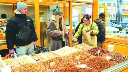 훈춘시는 유구한 력사, 다채로운 문화, 다양한 음식, 면세 쇼핑 등으로 갈수록 많은 로씨야 관광객들을 끌어들여 다국관광과 상업협력에 새로운 동력을 불어넣고 있다. 사진은 일전 훈춘에서 쇼핑을 즐기는 로씨야 관광객들의 모습이다.