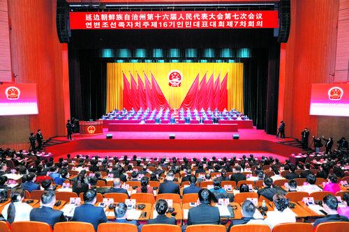 21일, 주 16기 인대 7차 회의 제1차 전체회의가 끝난 후 첫번째 ‘대표통로’가 연변로동자문화궁에서 열렸다.
