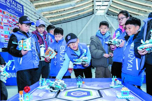 5일, 2025 오진 청소년과학기술카니발이 절강성 동향시 오진 ‘인터넷의 빛 박람중심’에서 개막했다. 활동은 경기, 배움, 놀이 3대 부분으로 나뉘였으며 61개 국가와 지역에서 온 6만여명의 청소년 선수, 지도교원, 과학기술 애호가들이 경기에 참여했다. 사진은 6일 선수들이 경기하는 모습이다.