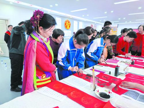 일전, 연길시 건공가두 연홍사회구역은 연길시제6중학교 학생, 길림은행 애단로지행 사업일군, 로인협회 로인 그리고 관할구역 주민 60여명과 함께 화기애애한 분위기 속에서 ‘춘련’을 쓰고 ‘복’자 전지를 하며 함께 전통문화를 체험했다.