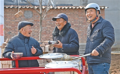 “점심이 왔어요. 음식을 받아가세요!” 우렁찬 웨침소리가 진령산맥 북쪽 기슭에 울려퍼진다. 섬서성 서안시 람전현 삼관묘진 리욕만촌당지부 서기 방부강은 매일 삼륜차를 타고 마을의 로인들에게 밥을 가져다 드린다.