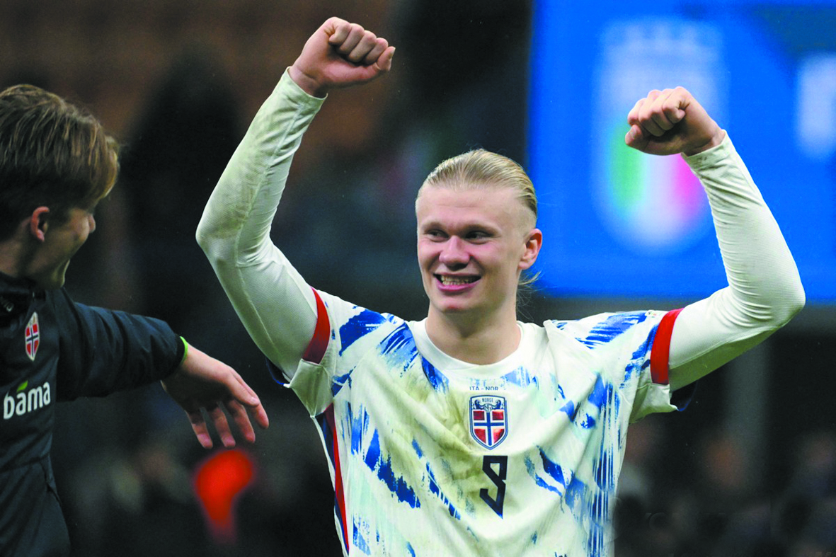 3경기 련속 멀티꼴 행진을 벌리며 유럽 예선 8경기에서 16꼴을 쏟아낸 ‘괴물’ 엘링 홀란(맨체스터 시티)의 원맨쇼를 앞세운 노르웨이가 28년 만에 월드컵 본선 무대를 밟는다.