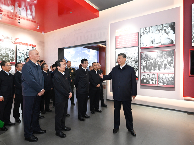 습근평 신강위글자치구 창립 70돐 주제 성과전람 참관