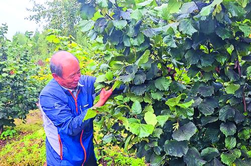올해 안도현 명월진 명동촌에서 재배하는 개암이 풍년을 맞아 무당 수확량이 300~350근에 이르렀다. 이 마을의 개암나무 재배면적은 약 12헥타르이며 개암나무는 1만 4000그루가 넘는다. 사진은 개암나무 재배농 최극군이 수확을 하는 모습이다.
