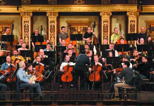 지난해 12월 29일, 오스트리아 윈에서 윈필하모닉오케스트라 단원들이 리허설을 하고 있다. 당일 2026년 윈 신년음악회 소식공개회가 오스트리아 수도 윈에서 열렸다. 소식공개회를 마치고 지휘자 야니크 네제-세르곤과 윈필하모닉오케스트라악단이 골든홀에서 2026년 윈 신년음악회를 위해 리허설을 했다.