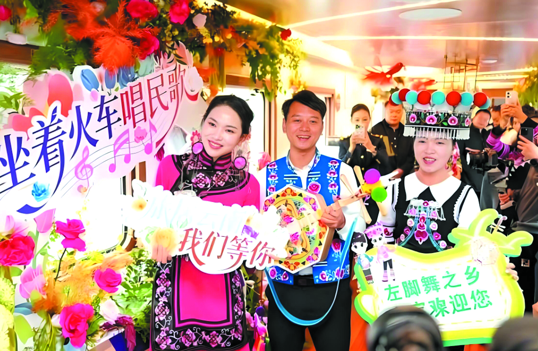 최근 운남에서 ‘기차를 타고 민요를 부르다’를 주제로 한 문화관광 홍보행사가 열렸다. 기차 안에서는 따이족의 부드럽고 우아한 노래, 장족의 웅장한 가락, 이족의 열정적인 멜로디, 나시족의 고전적이고 신비로운 선률이 어우러져 ‘운남 소리 기록지’(云南声音志)를 써내려가고 있다.
