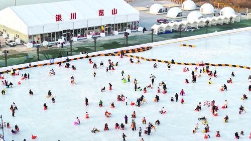 17일, 시민들이 은천문화관광집단 람산공원 일몰스케트장에서 즐거운 시간을 보내고 있다. 최근 녕하 은천시에 기온이 지속적으로 내려가는 날씨가 나타나자 시민들이 너도나도 야외로 나와 빙설문화관광 대상을 체험하며 빙설의 즐거움을 만긱하고 있다.