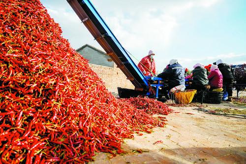 [단독사진] 내몽골 통료시 개로현 붉은 건고추 수확기 맞이
