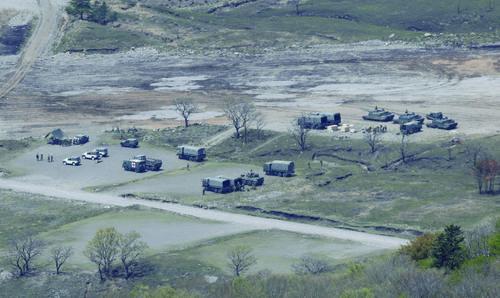 21일, 일본 오이타현에서 촬영한 륙상자위대 히주다이훈련장의 모습이다. 일본 방위성은 21일 오전 히주다이훈련장에서 포탄폭발사고가 발생해 3명이 숨지고 1명이 다쳤다고 밝혔다. 히주다이훈련장은 서일본지역에서 일본 륙상자위대의 최대 규모 훈련장이자 주일미군 해병대의 실탄사격 훈련이 이루어지는 장소이다.