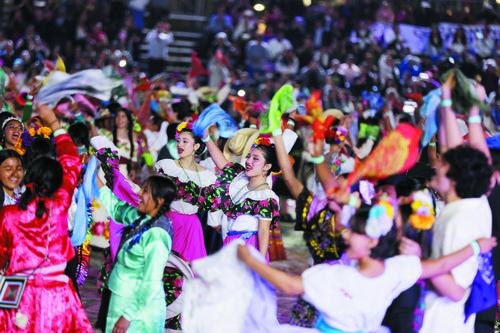 22일, 메히꼬 수도 메히꼬시 헌법광장에서 어린이와 청소년들이 언어문화제 행사에 참가하고 있다. 이날, 메히꼬 원주민 언어문화제가 개최된 가운데 전국 각지 원주민 공동체에서 온 어린이와 청소년들이 메히꼬 언어와 문화의 다양성을 알리기 위해 현지어로 공연을 진행했다.